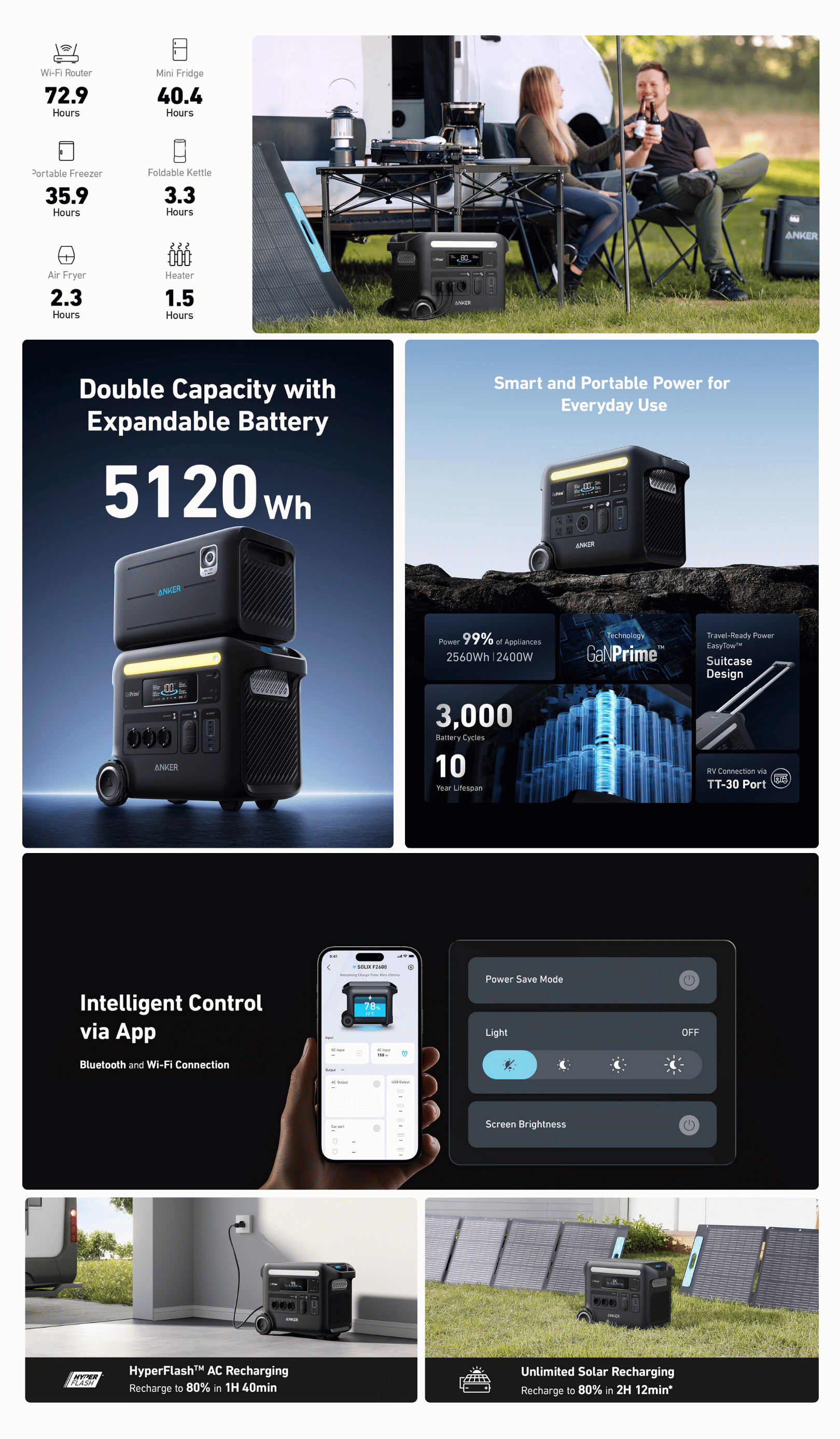 Station d'alimentation portable Anker SOLIX F2600 - 2 560 Wh | 2 400 W