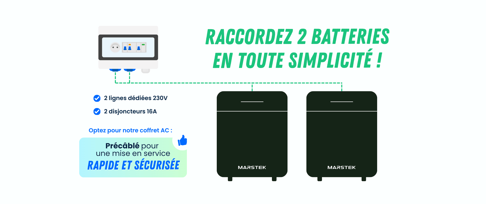 Oui, il est tout à fait possible de brancher plusieurs batteries Marstek entre elles pour augmenter votre capacité de stockage :