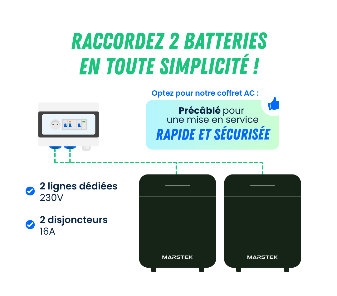 Si vous avez dĂ©jĂ dâautres batteries chez vous (dâune autre marque), il est Ă©galement possible dâajouter des batteries Marstek en complĂ©ment. Elles fonctionneront en parallĂšle. Cela permet dâaugmenter votre autonomie globale sans modifier votre systĂšme existant.