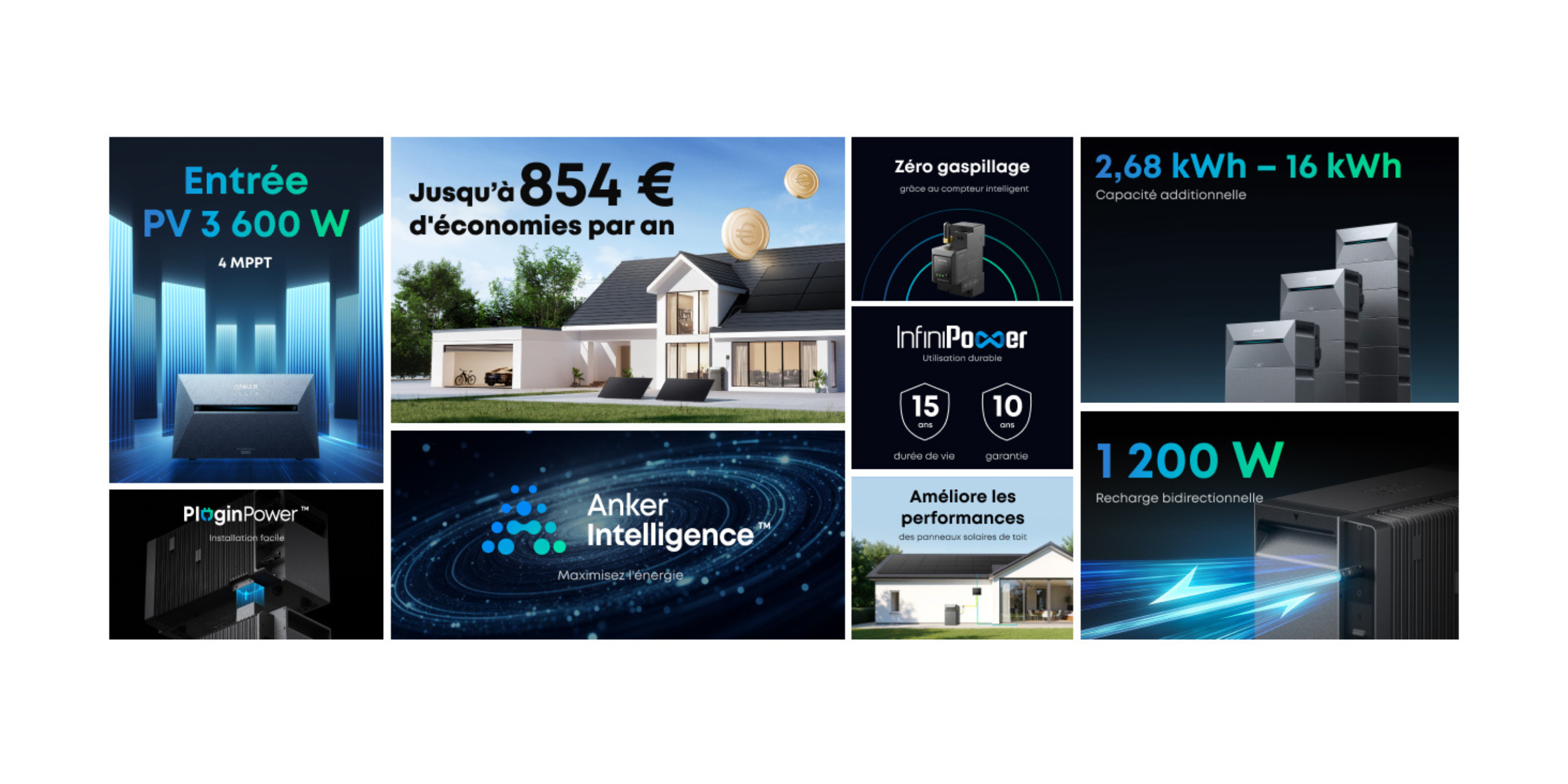 La Solarbank 3 E2700 Pro est équipée de la technologie Anker Intelligence™, un système confidentiel de traitement des données. Si vous activez le mode Intelligent dans l'application Anker, la technologie Anker Intelligence™ peut analyser vos données de consommation énergétique, votre localisation géographique, les conditions météorologiques, et vos habitudes d'utilisation pour produire des prévisions d'excès énergétique. Ce système maximise l'utilisation d'énergie solaire et de l'électricité peu coûteuse du réseau, répartit intelligemment le surplus énergétique, et optimise la distribution d'énergie. Cela permet une amélioration générale des performances et vous aide à maximiser vos économies.