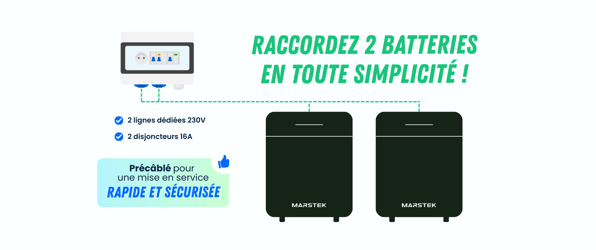Permet de raccorder deux batteries ou un ensemble batterie + onduleur sur une ligne électrique dédiée.